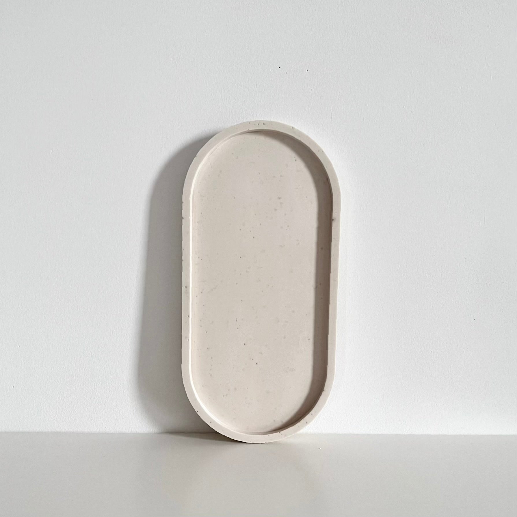 Introducing our Earth Collection oval tray in Pearl White, handmade in large size. Each piece is meticulously crafted with Jesmonite, a natural mineral material that is eco-friendly, lightweight, heat resistant, food safe and non-toxic. Each piece is sealed with beeswax food-grade sealant, which makes it smooth and velvety to the touch.